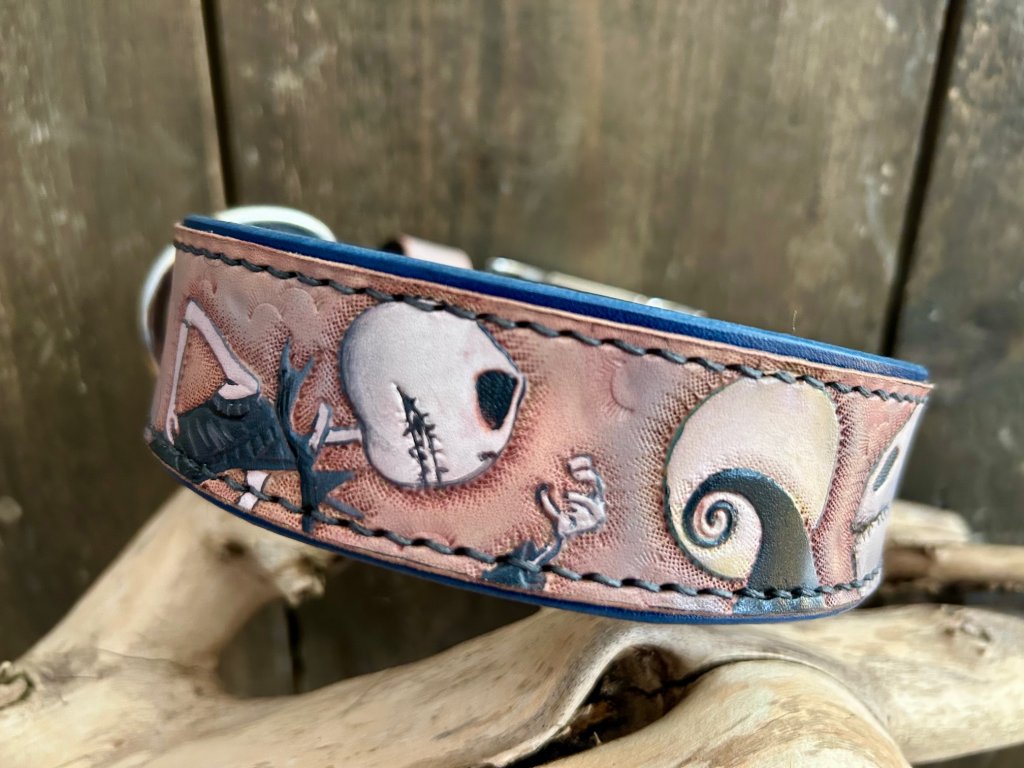 Tento ručně vyráběný kožený obojek není jen doplňkem – je to módní statement pro psy, kteří milují sofistikovanou eleganci a nebojí se přidat špetku temného humoru.